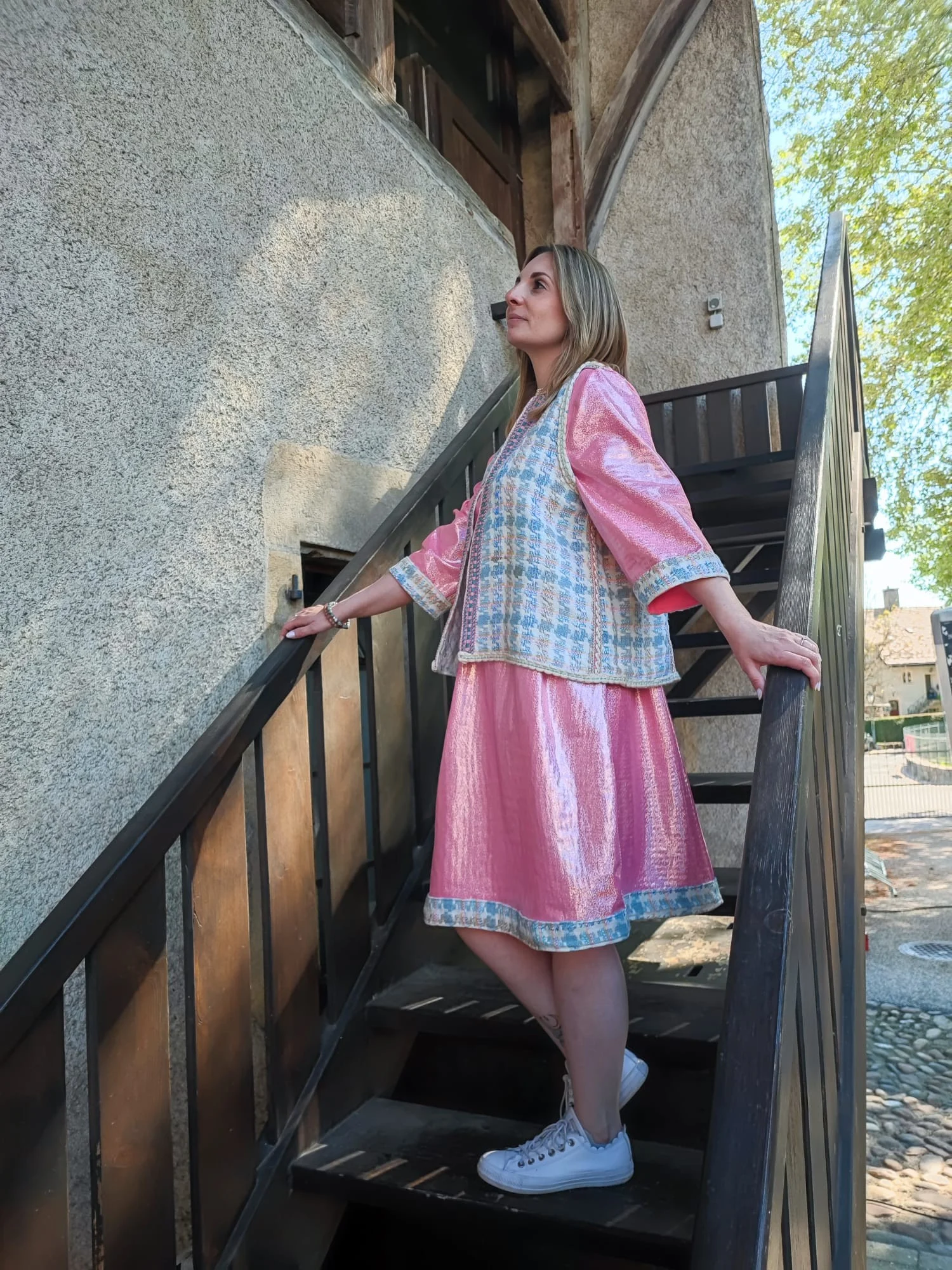 Robe rose lycra et laine recycles forme empire collection deuxieme vie fifi au jardin i7