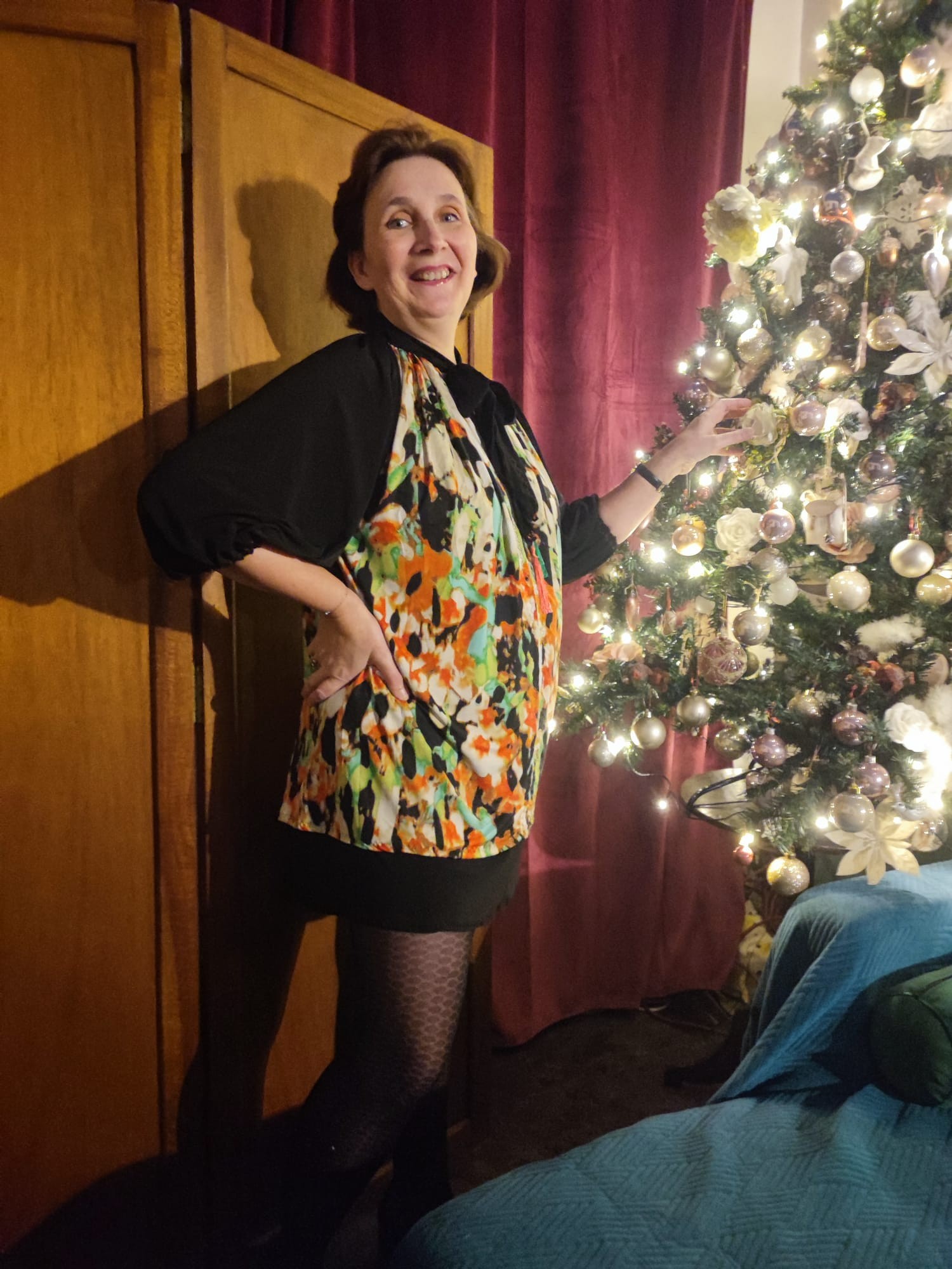 Robe tunique soiree d elegance jersey encolure americaine pompons de soie collection ell egance fifi au jardin i3