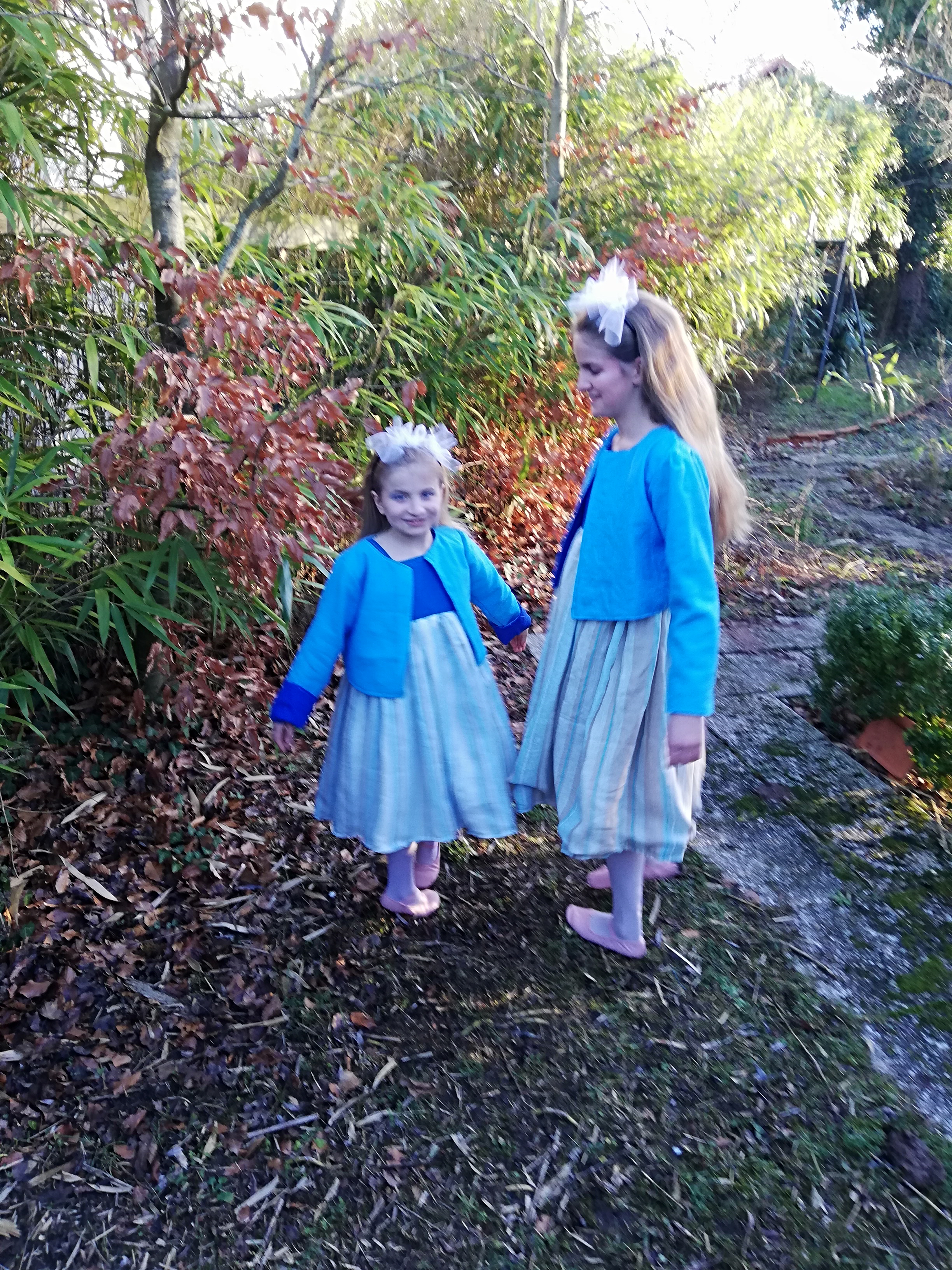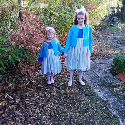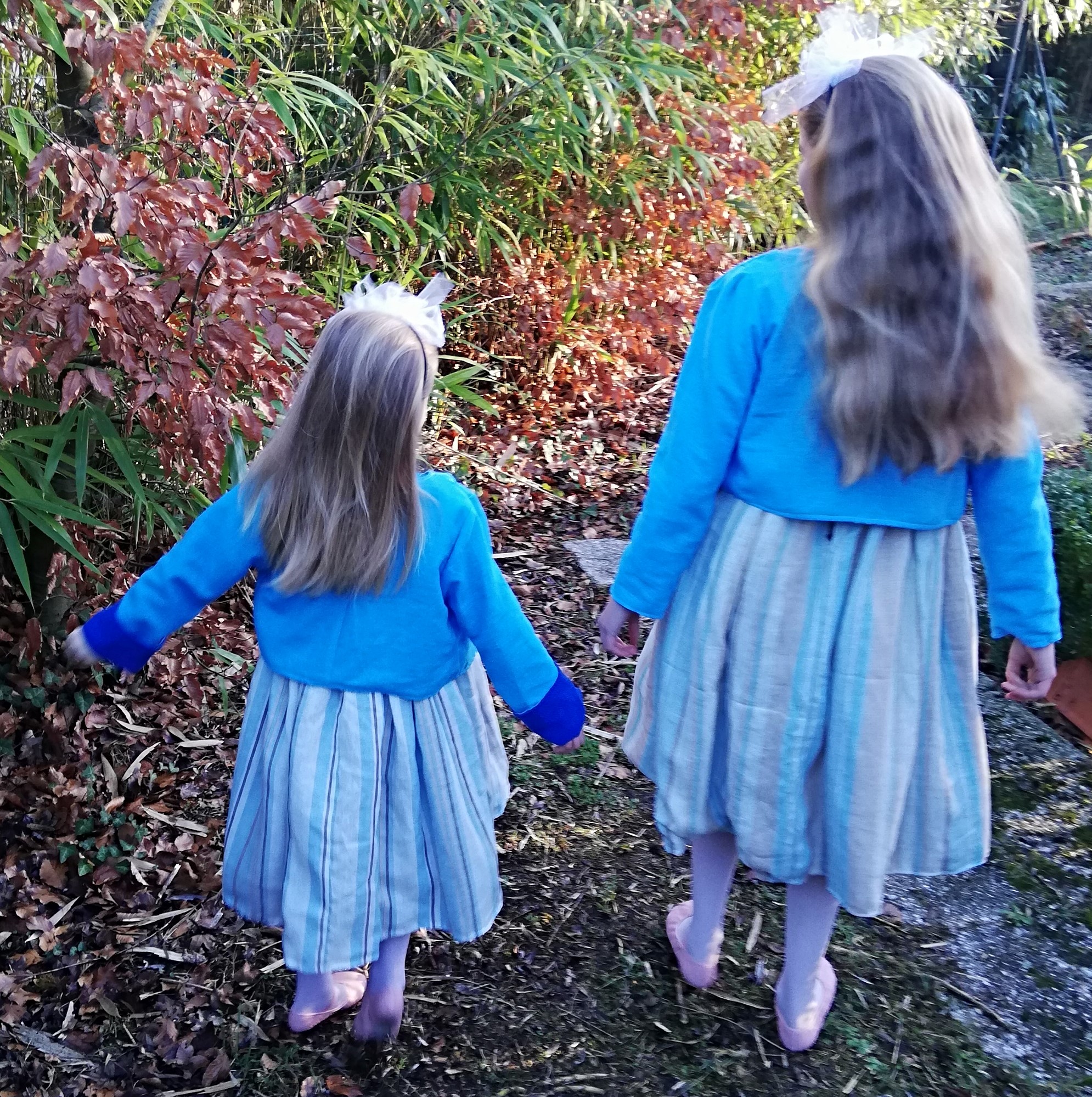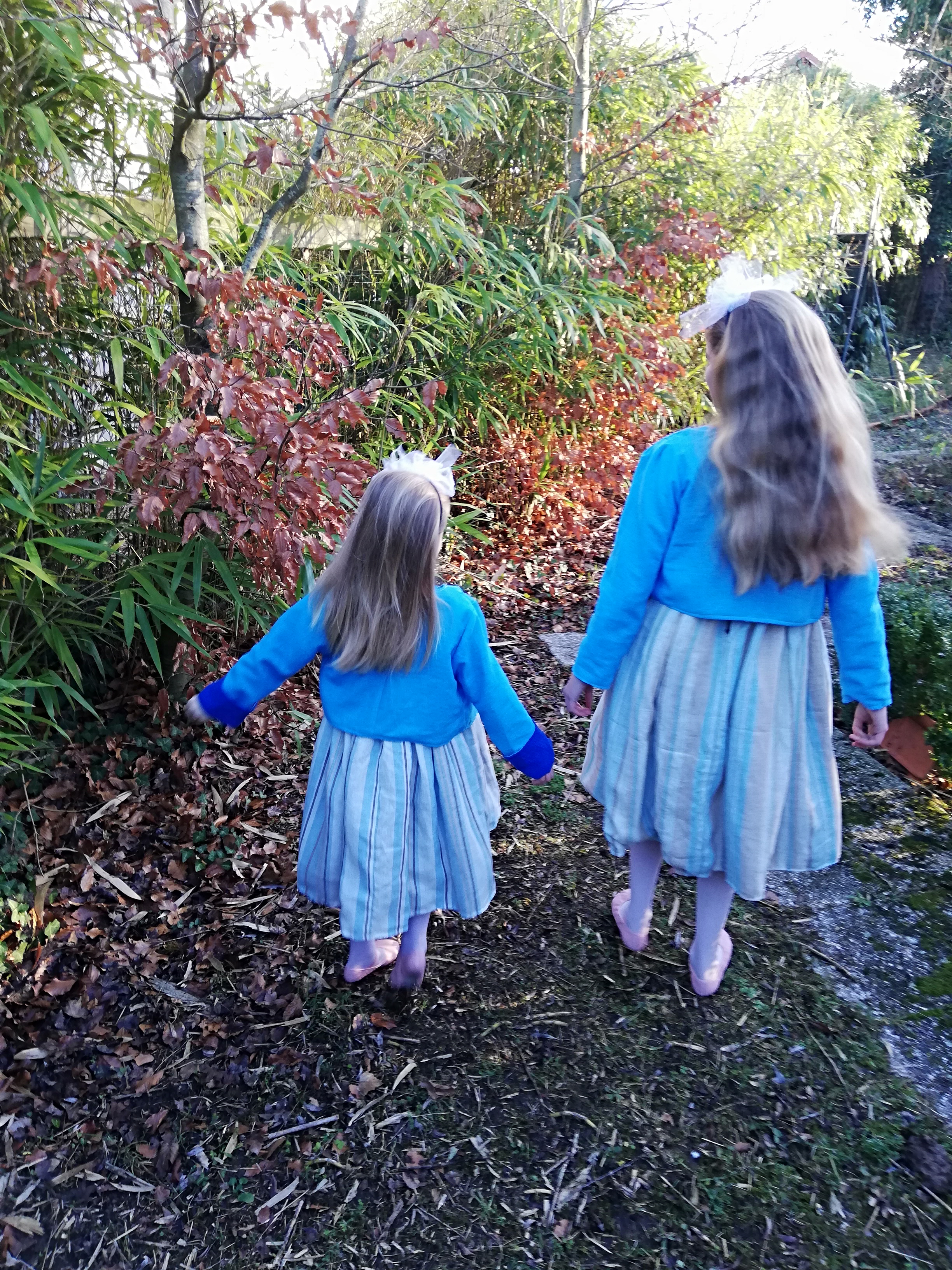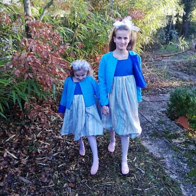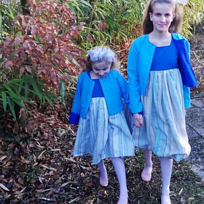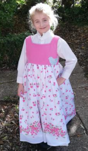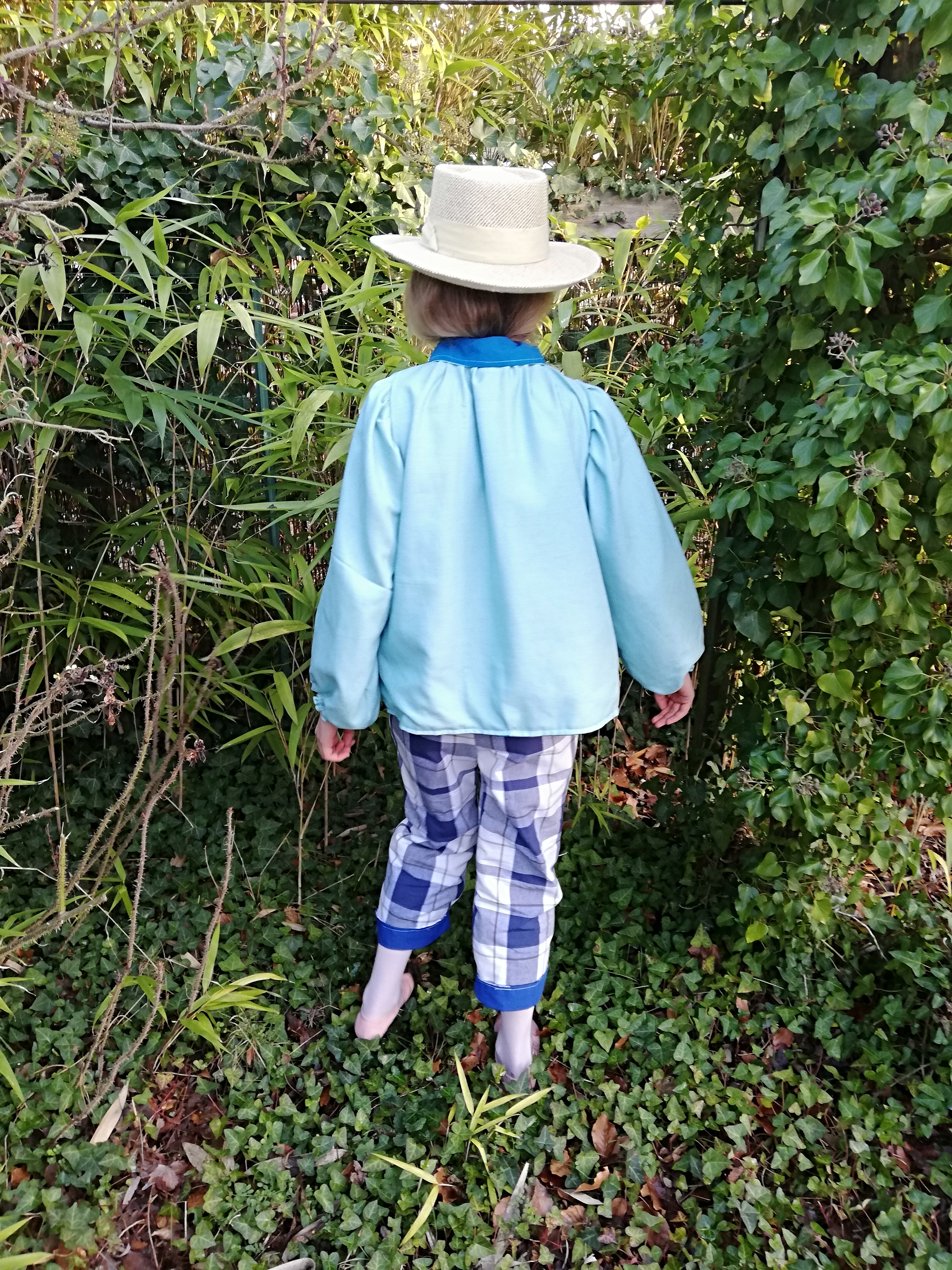 Colombe pour Fifi au jardin en robe réversible Framboise