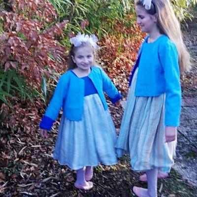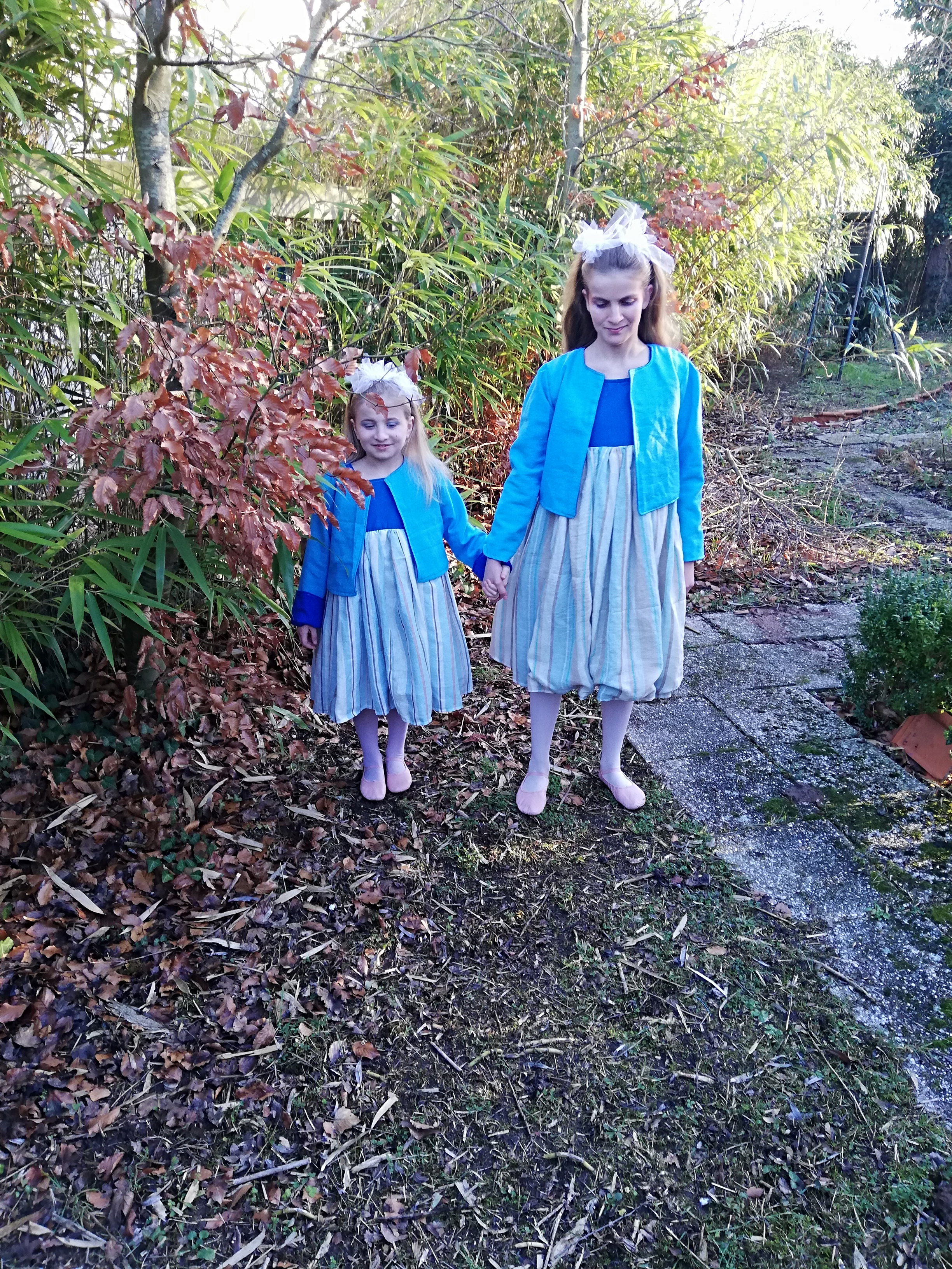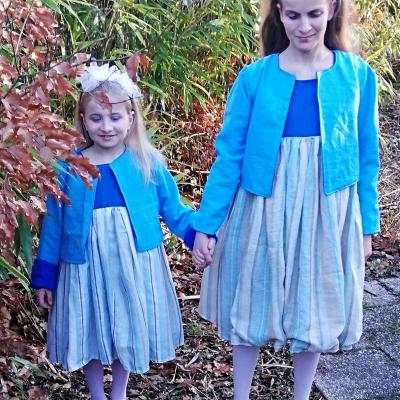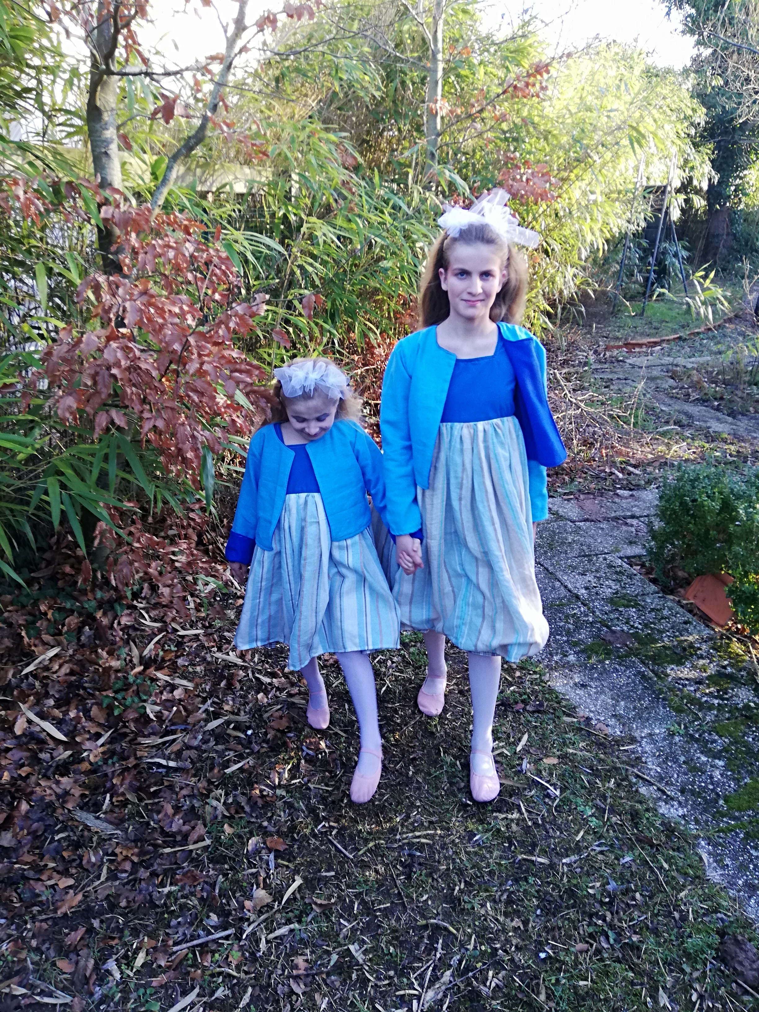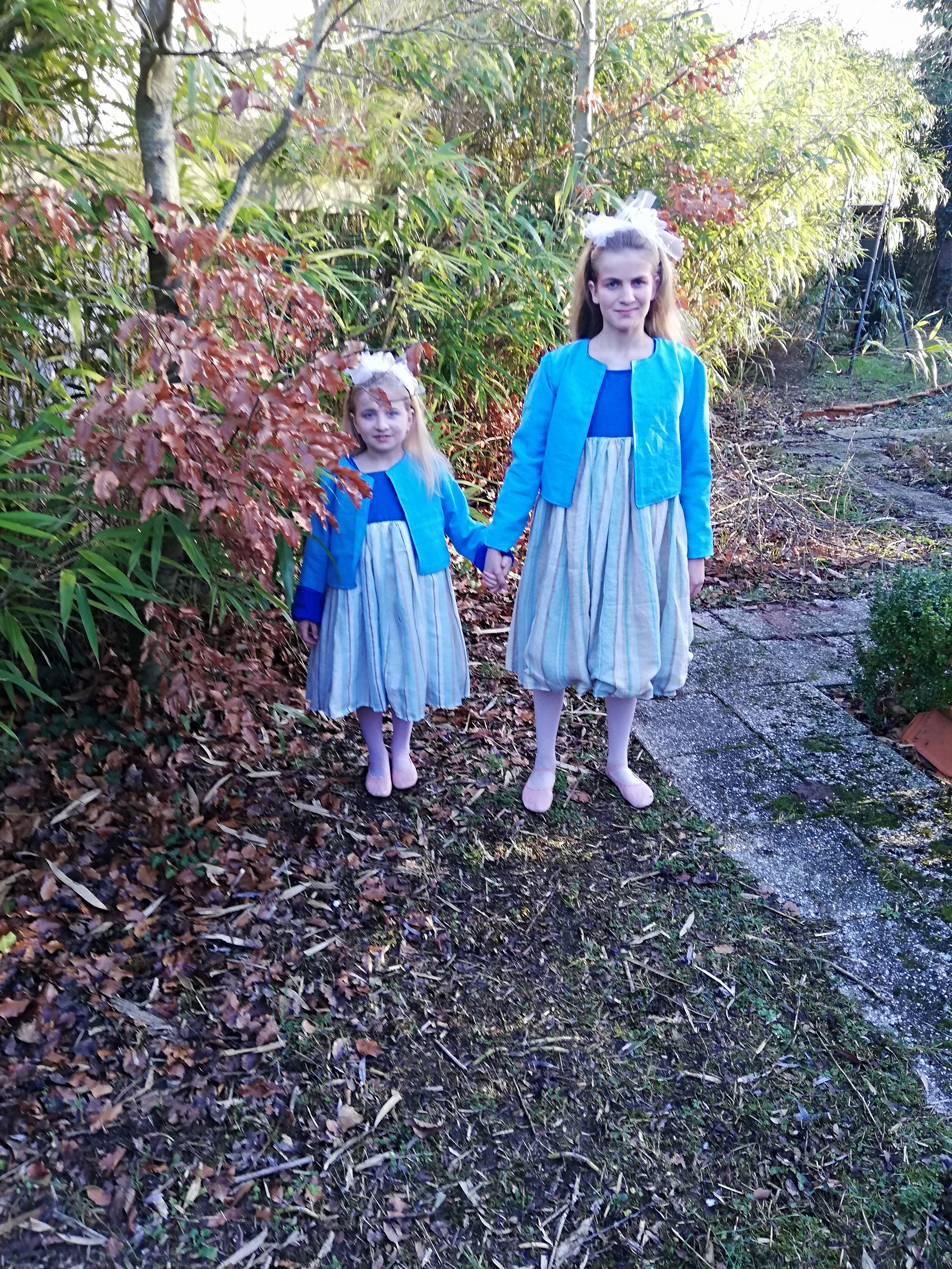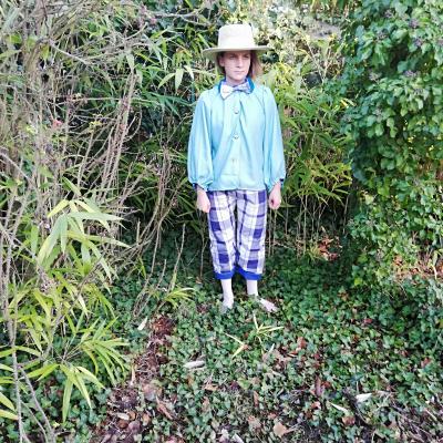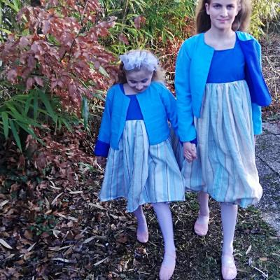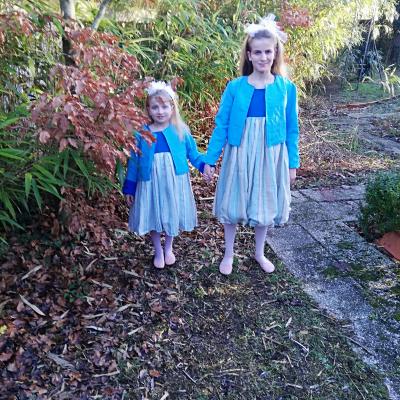 Colombe pour Fifi au jardin en robe réversible Framboise
