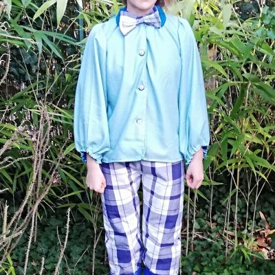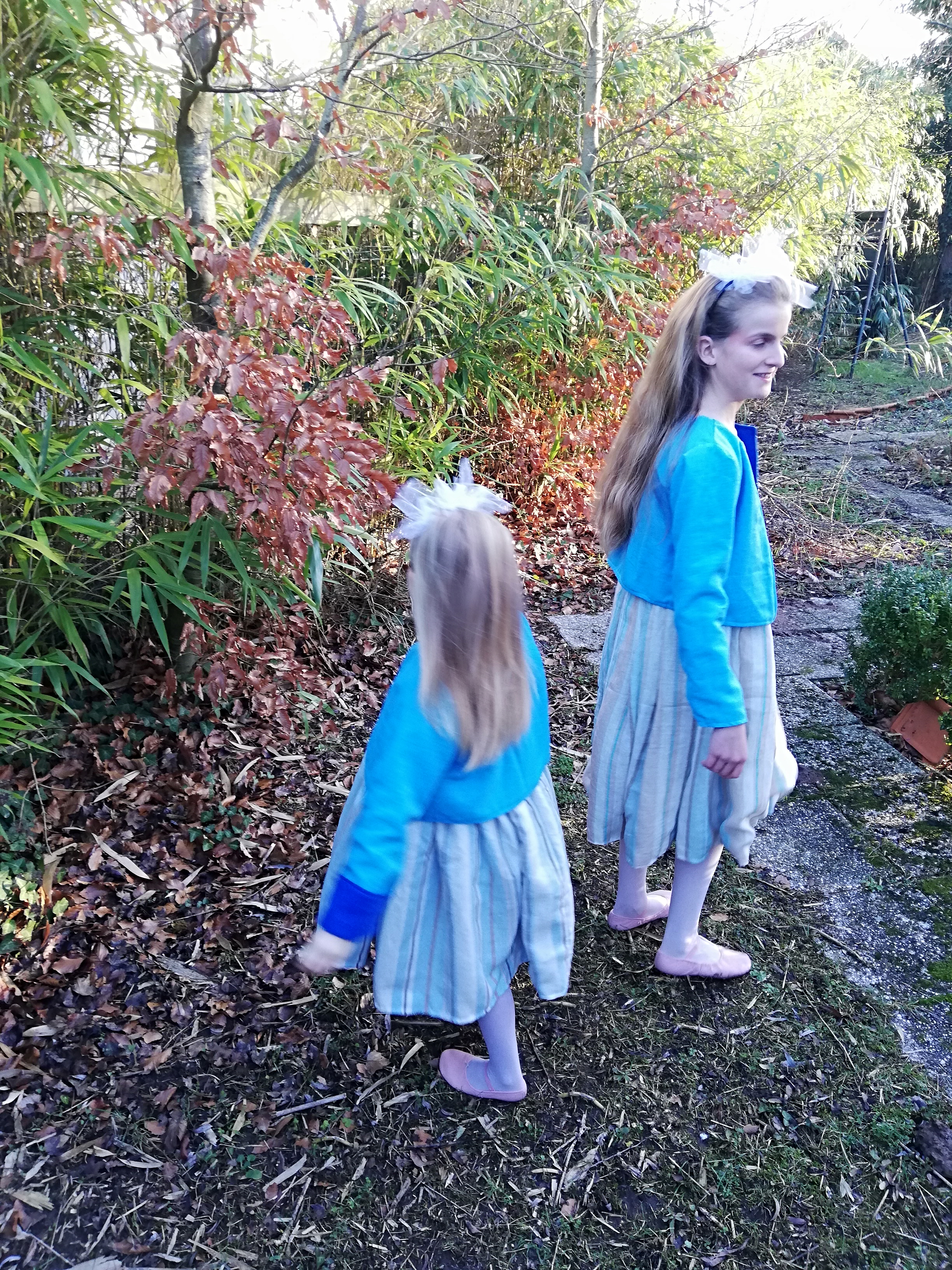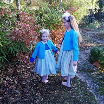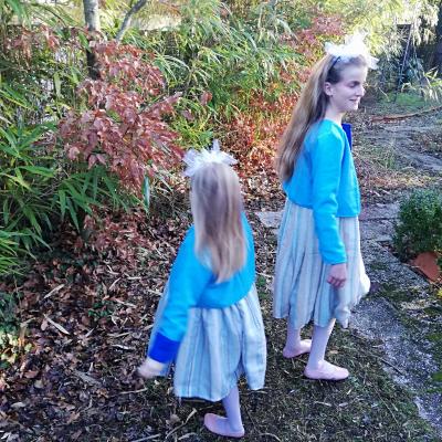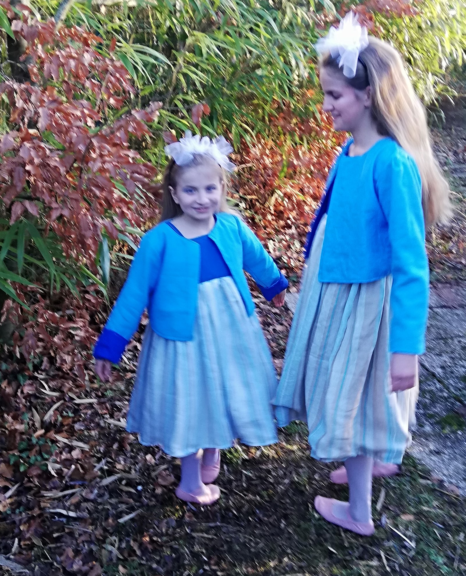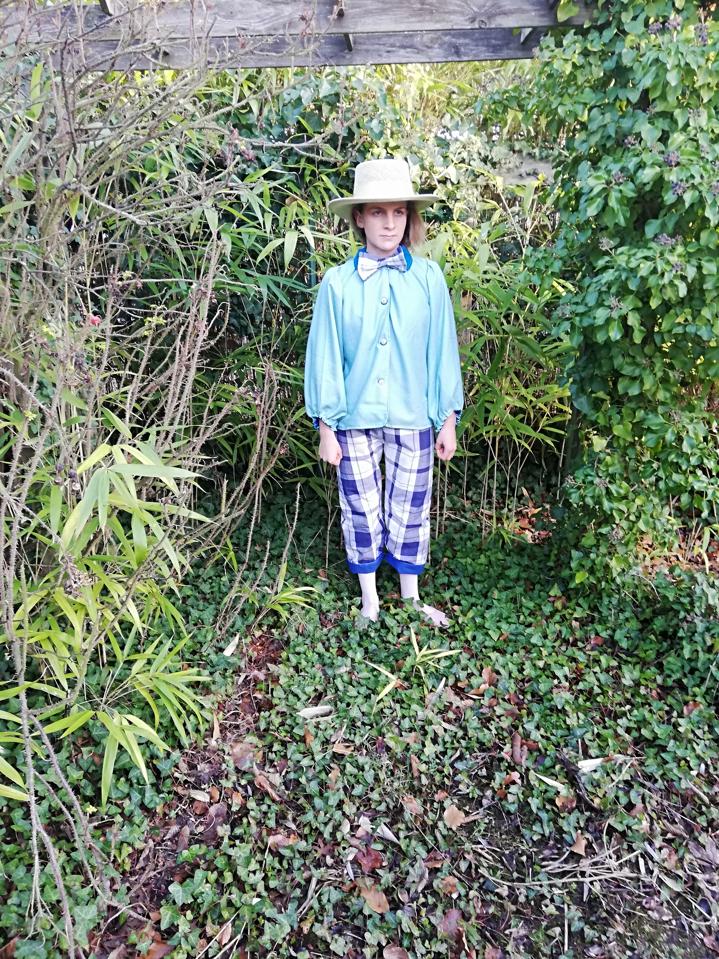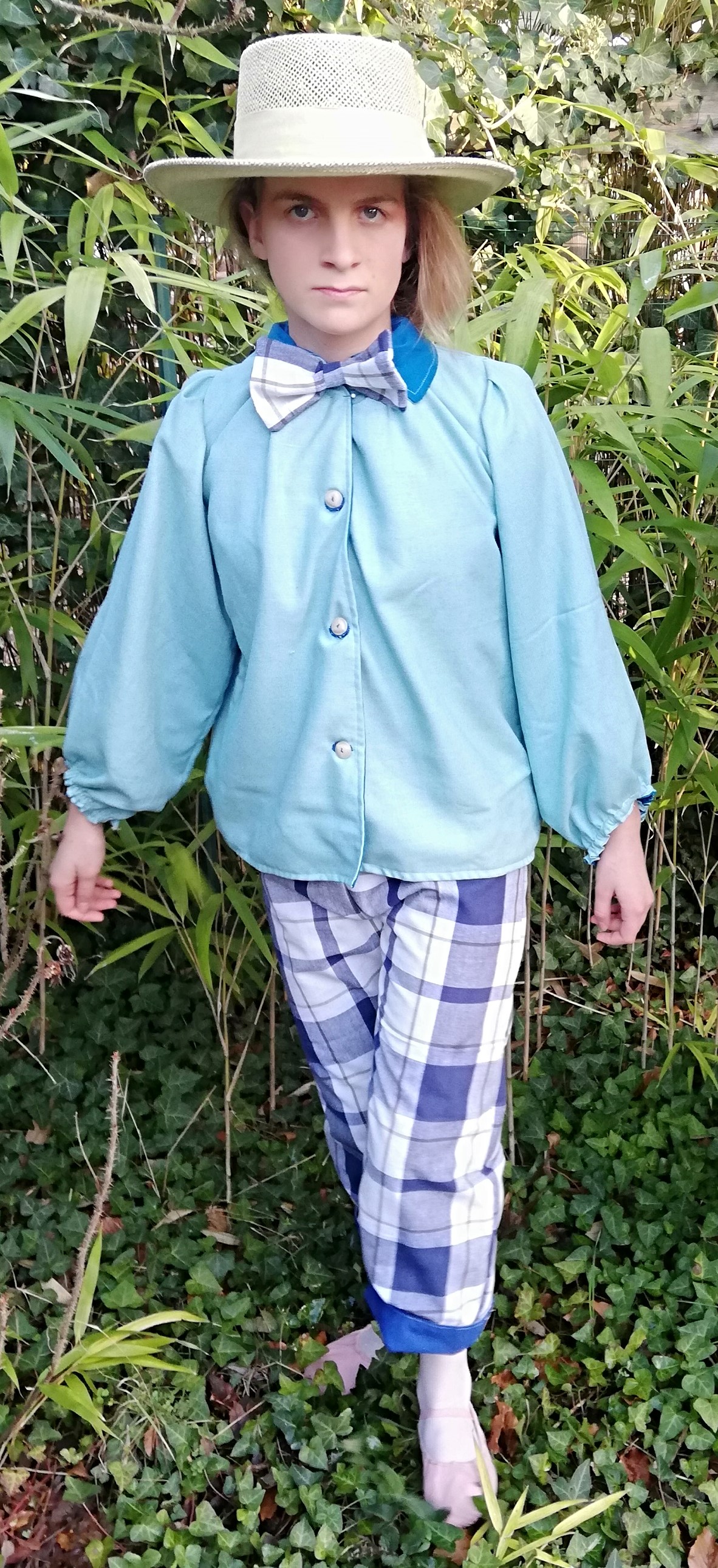 Colombe pour Fifi au jardin en robe réversible Framboise