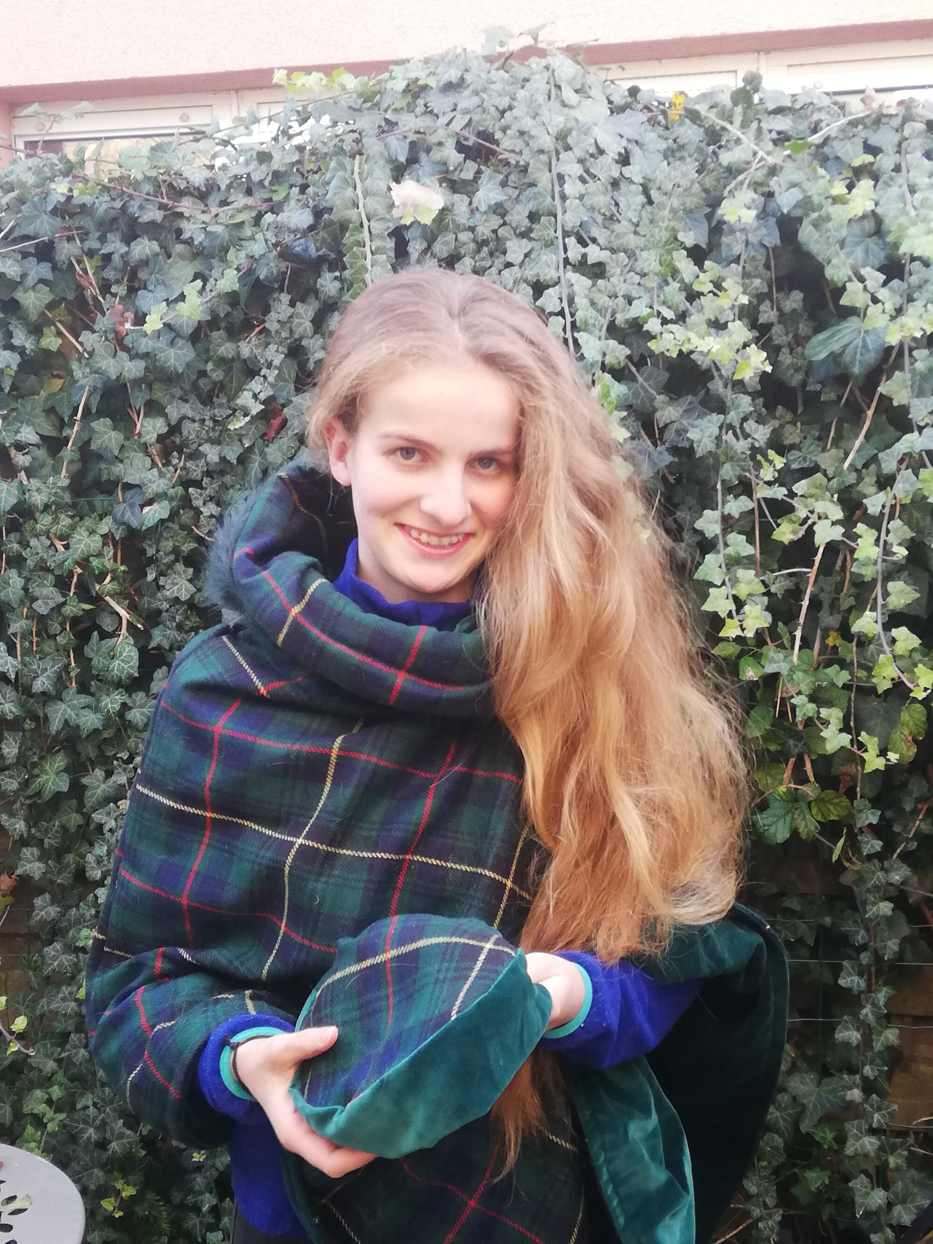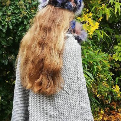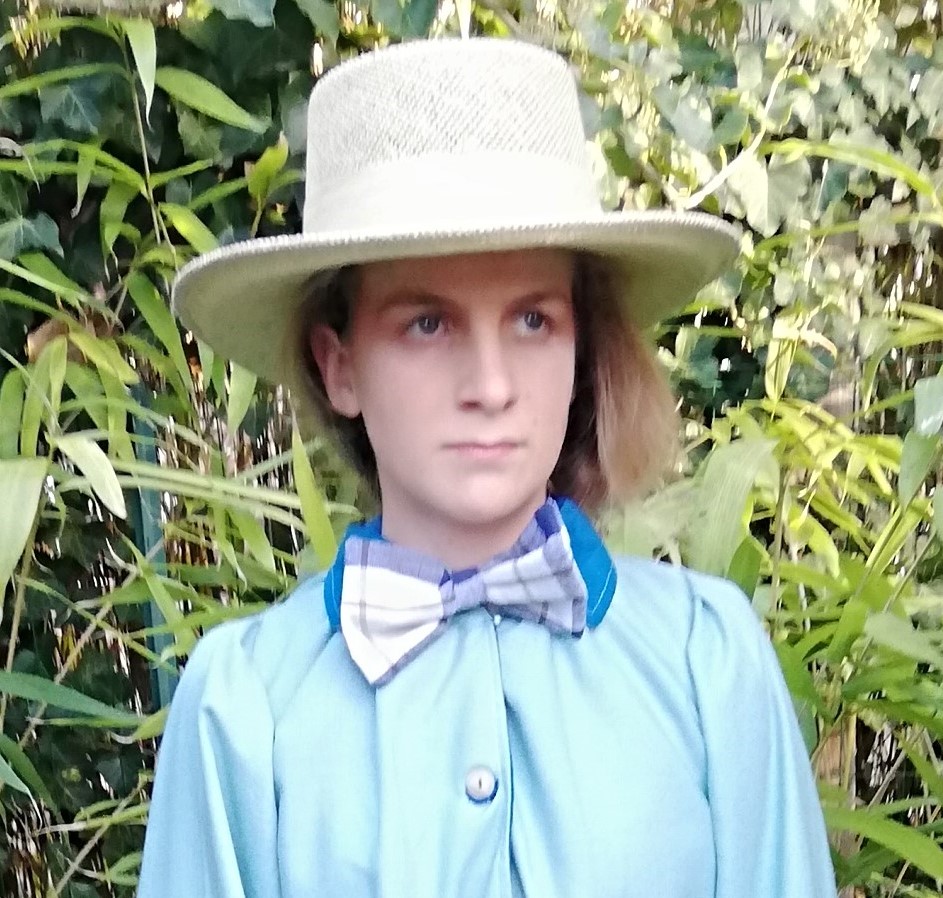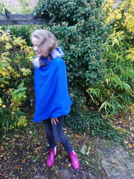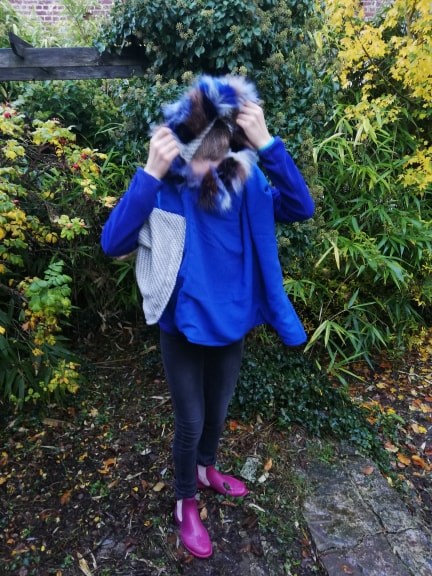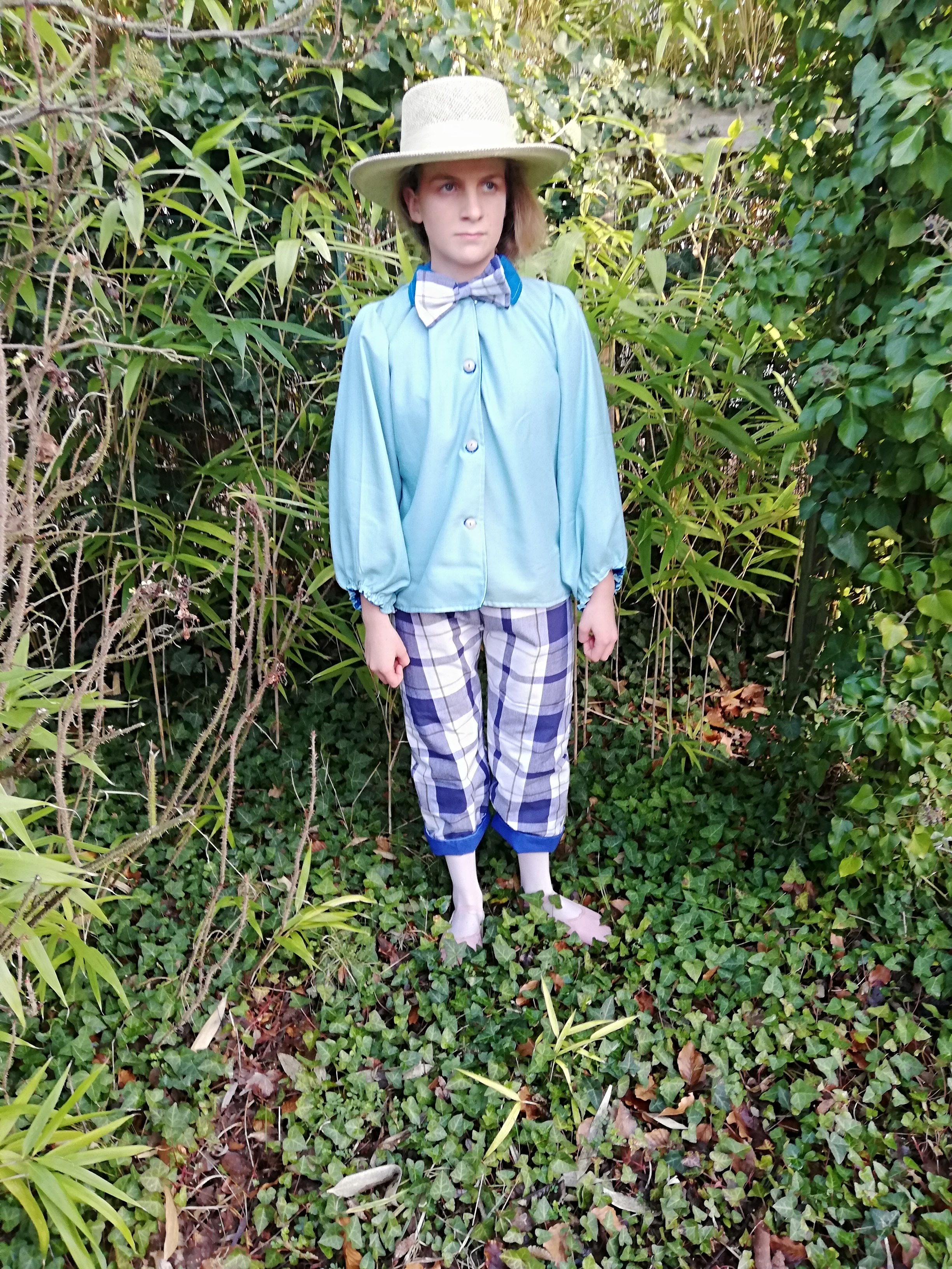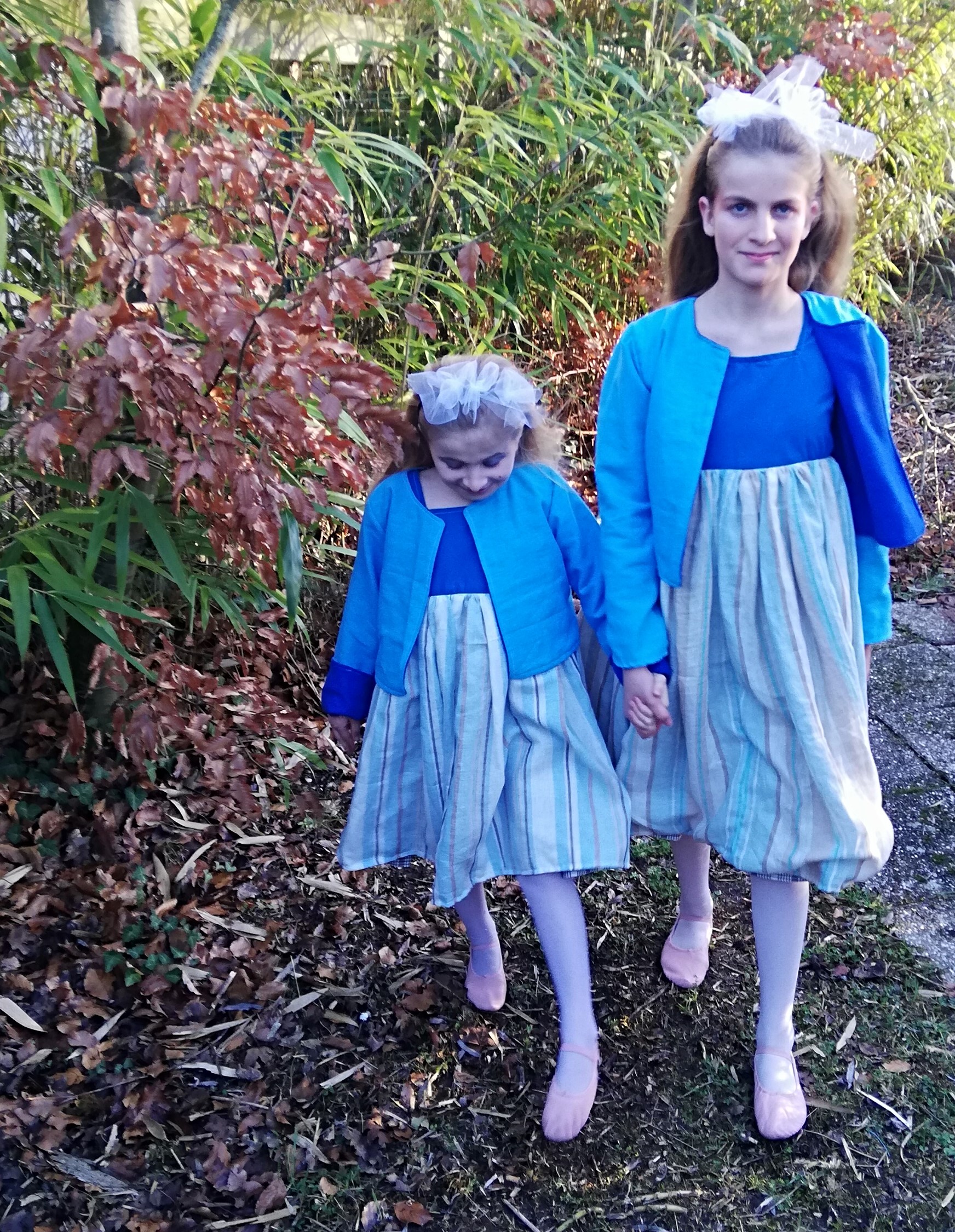 Colombe pour Fifi au jardin en robe réversible Framboise