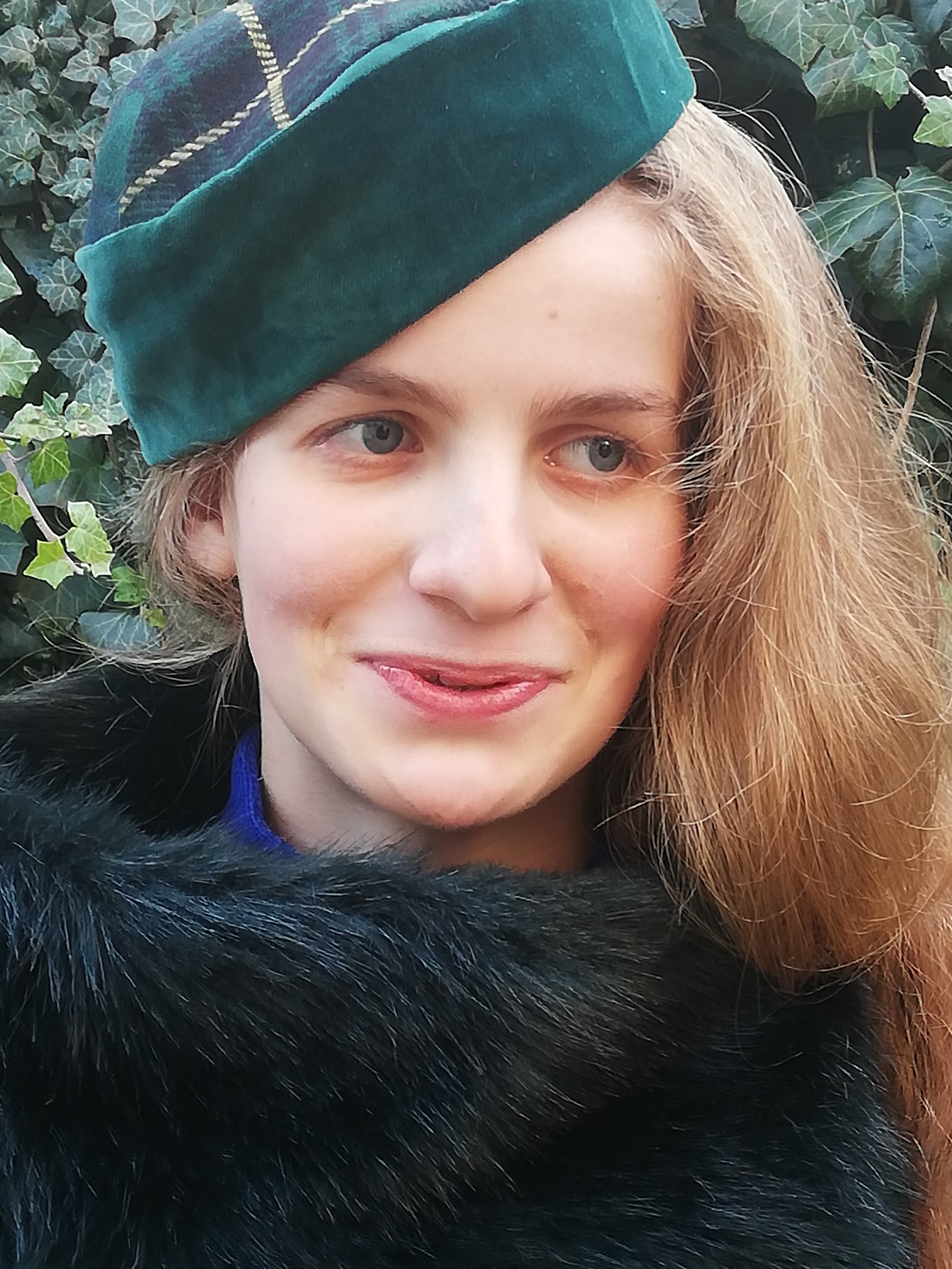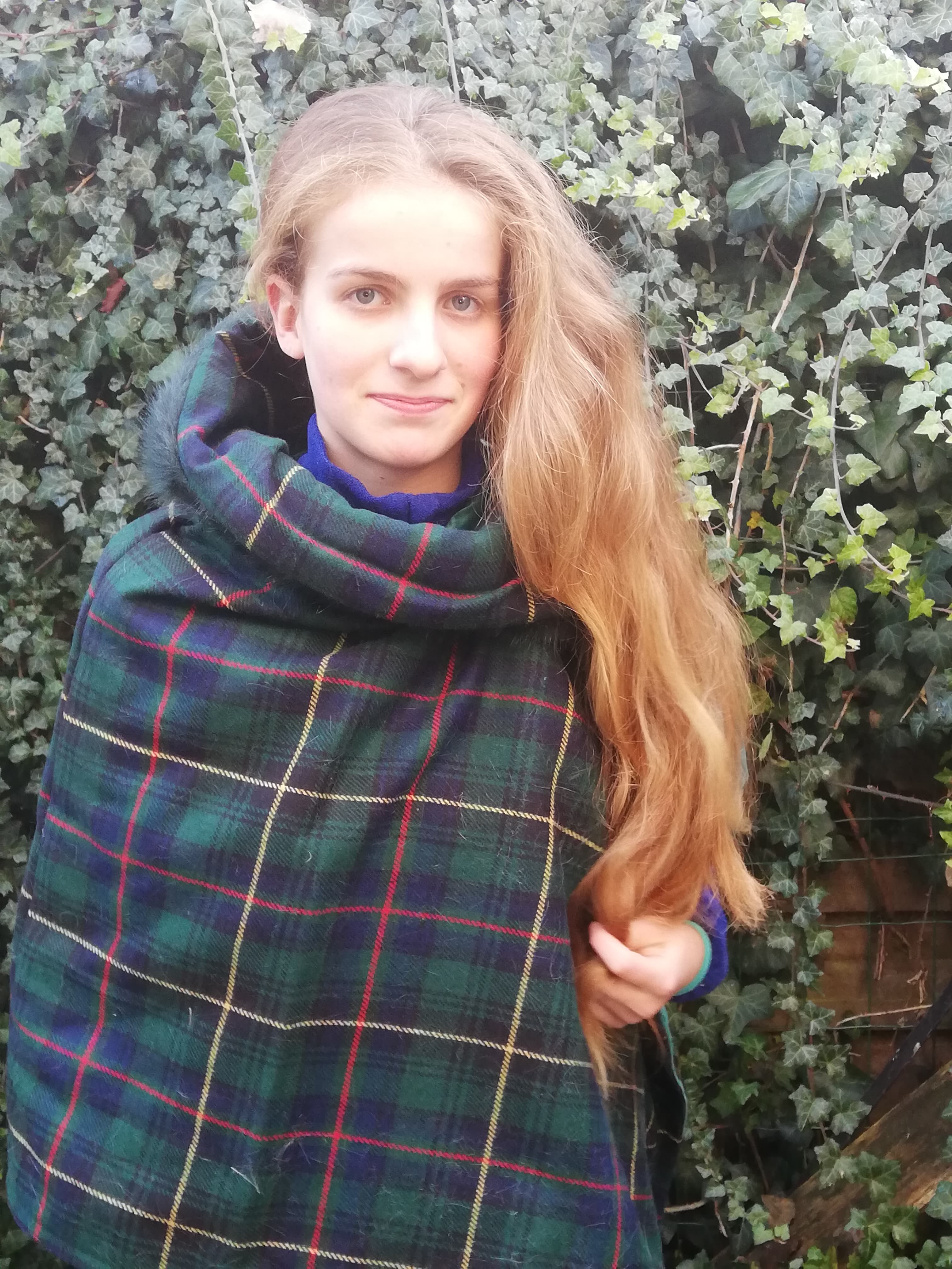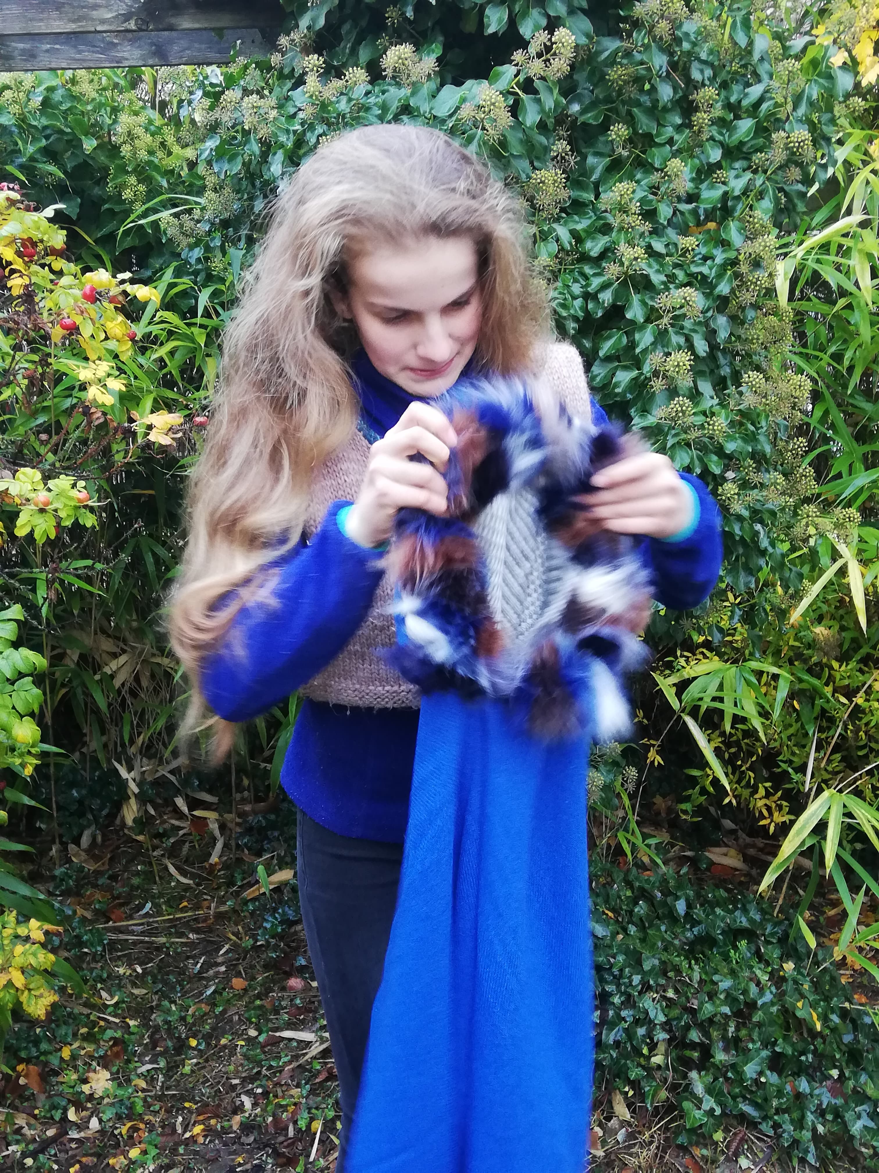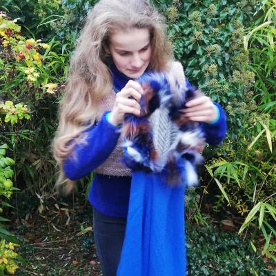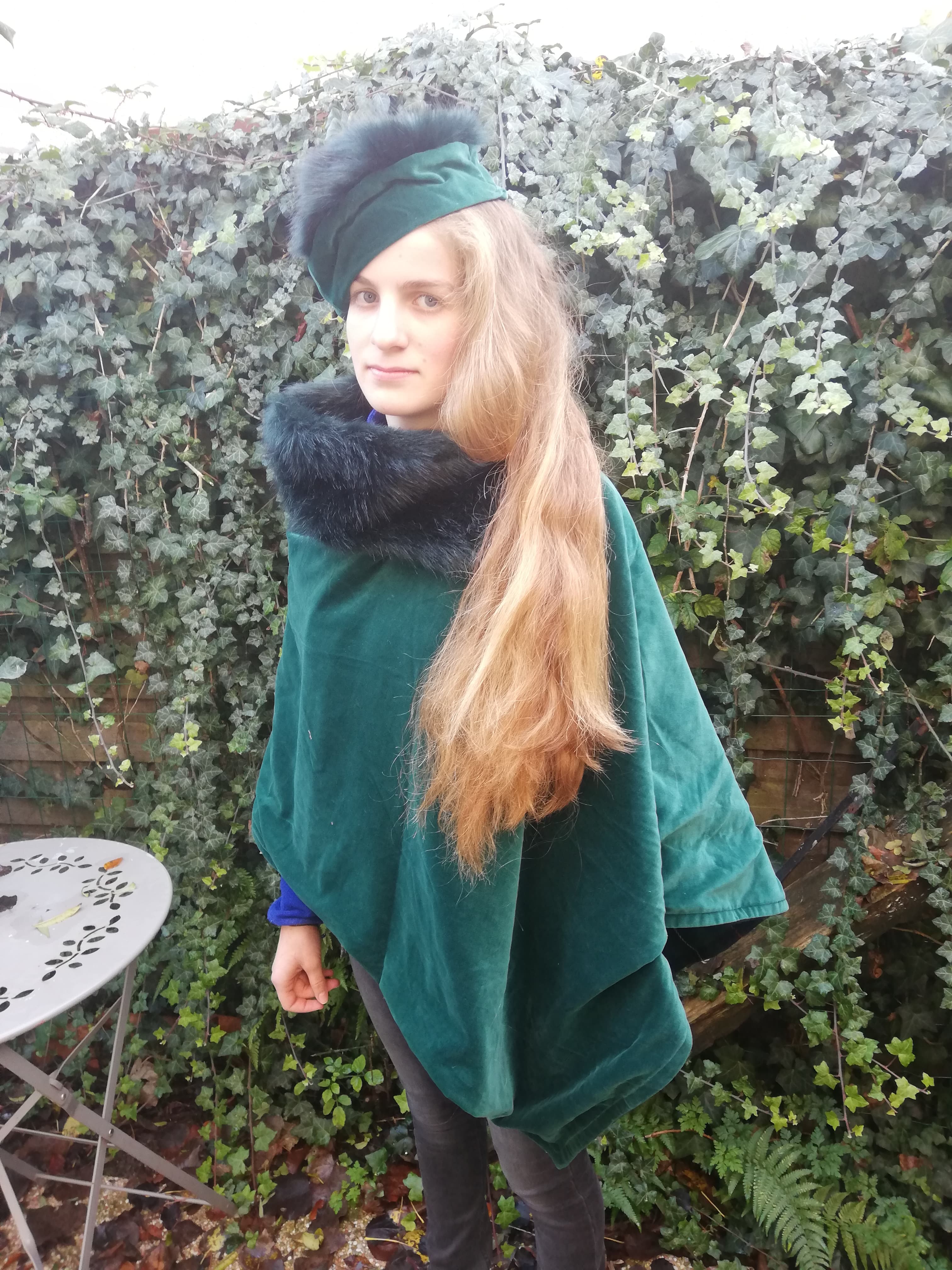Colombe pour Fifi au jardin en robe réversible Framboise