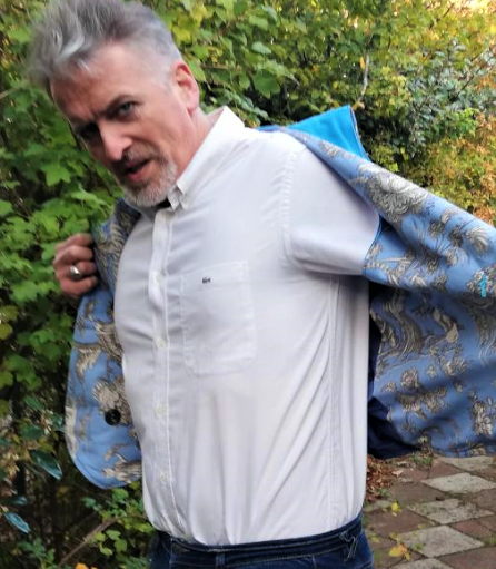 gilet réversible Hommes Fifi au jardin L'élégant bleu_mannequin Laurent Comte de Duras