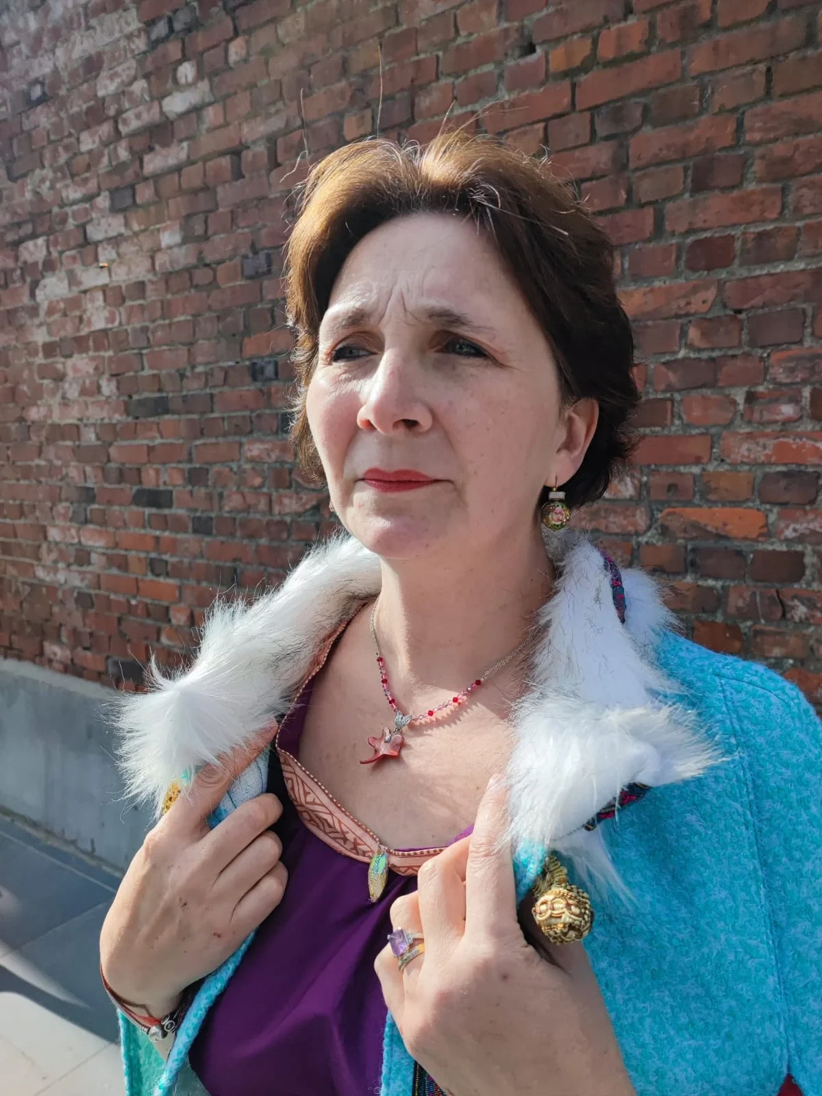 Robe violette et ceinture tenue medievale costume historique fait main fifi au jardin i1