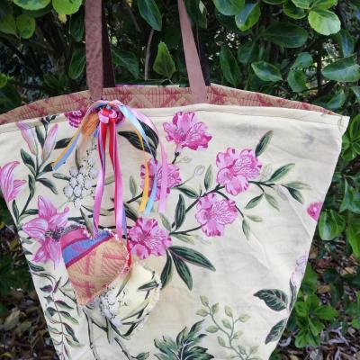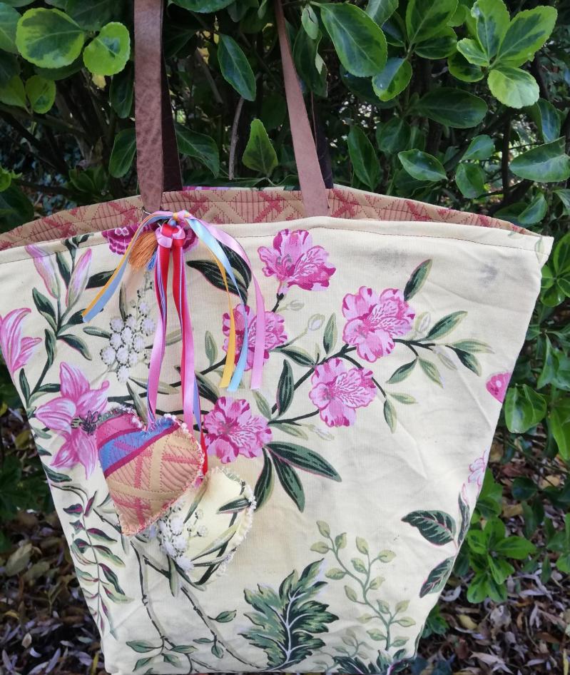 Car, bien sûr, n'oublions pas que chez Fifi au jardin toutes les créations sont réversibles et sont donc toujours créées pour être 2 en 1. C'est tout simplement MAGIQUE et très astucieux, comme ça on peut choisir en fonction de ta couleur, de ton envie ou de ton humeur du jour!!! Vous ne trouvez pas?!! Et si tu en as assez du côté bleu marine, tu retournes intégralement le sac et tu utilises l'autre version côté liberty couleurs jaune-rose-anis.
