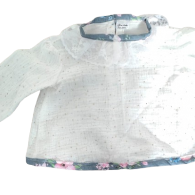 Brassière double gaze blanche avec inclusions dorées, finitions biais coton fleuri, col...