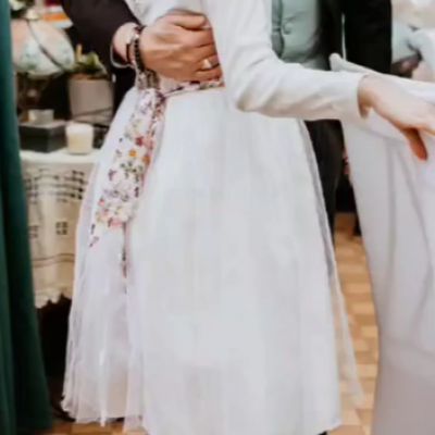 Robe satin et tulle, empiècement empire, doublée, ceinture coton, boutonnage arrière,...75,00€ TTC