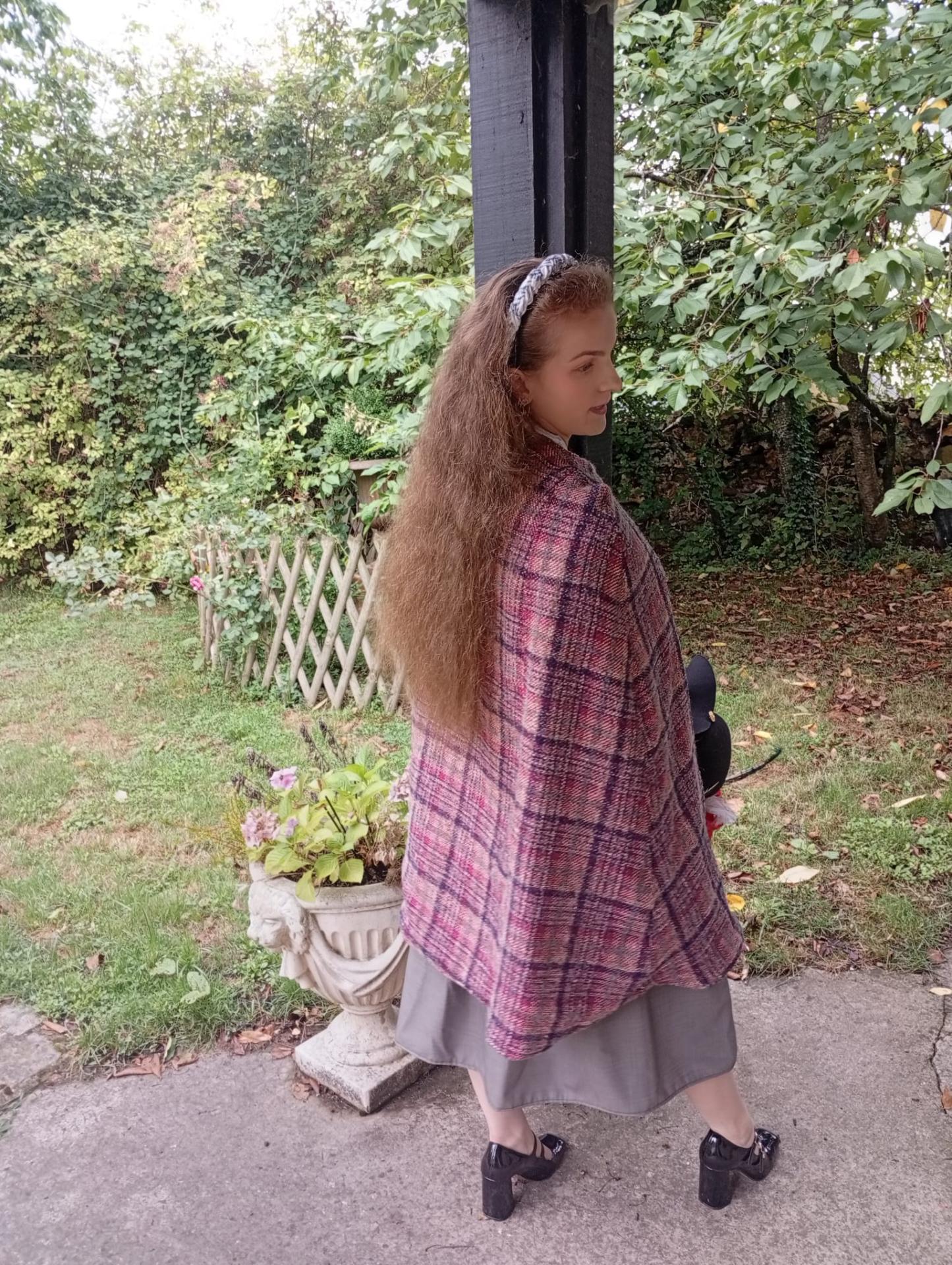 Fifi au jardin cape fait main cape femme pièce unique mode durable slow fashion collection capsule création française laine et coton boutons bijoux cape chic cape éthique vêtement d’hiver élégant cape taille unique vêtement créateur