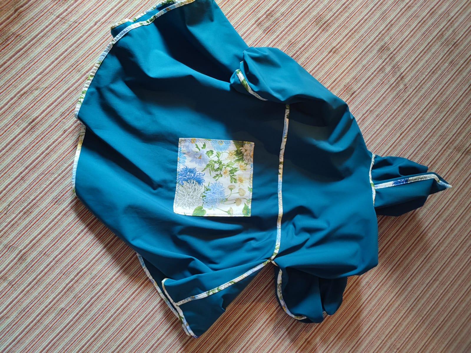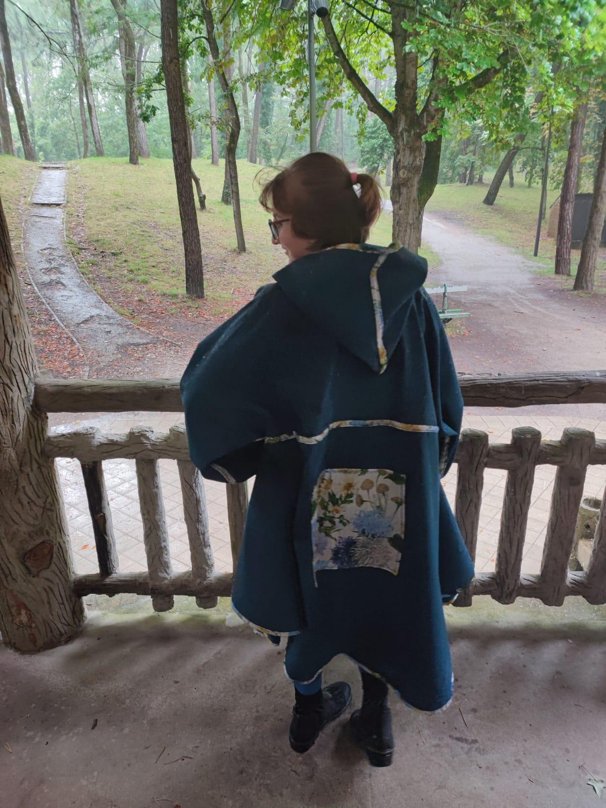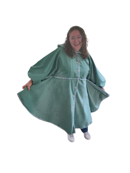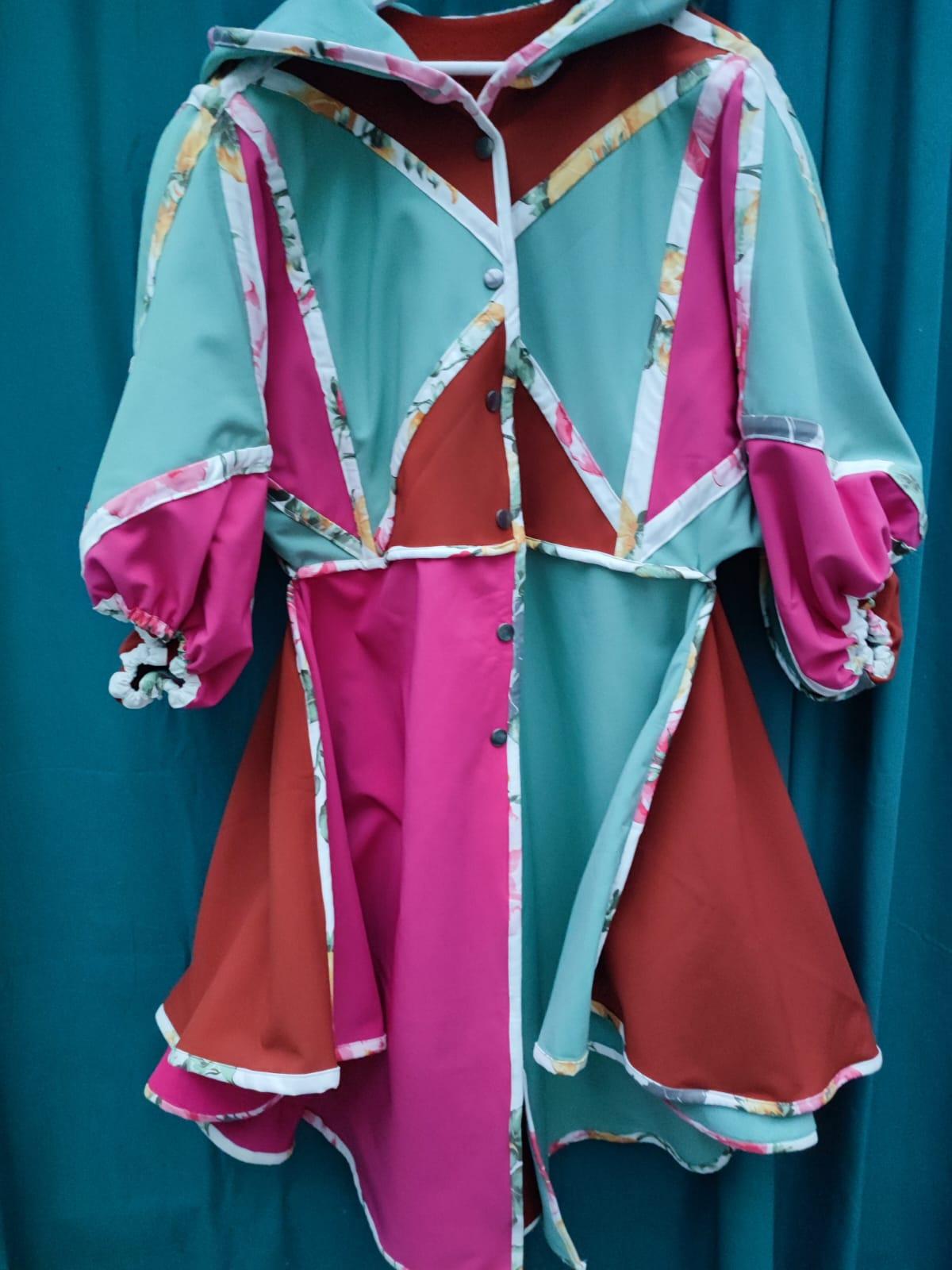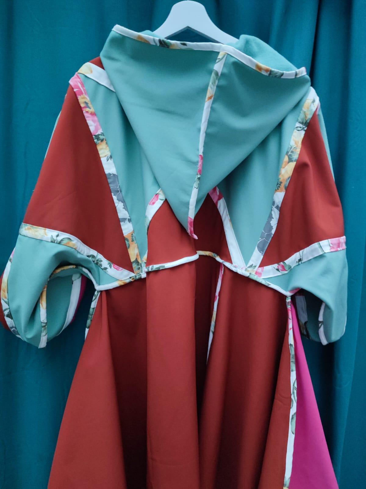 Softshell, imperméable et chaud et biais coton, fermeture par pressions, capuche, manches aux poignées élastiques, pour sortir sous la pluie, pour être au chaud ou pour se cocooner: réalisé à la main dans notre atelier de Boulogne sur Mer, 100 % coton, softshell, élastique + beaucoup d'amour !