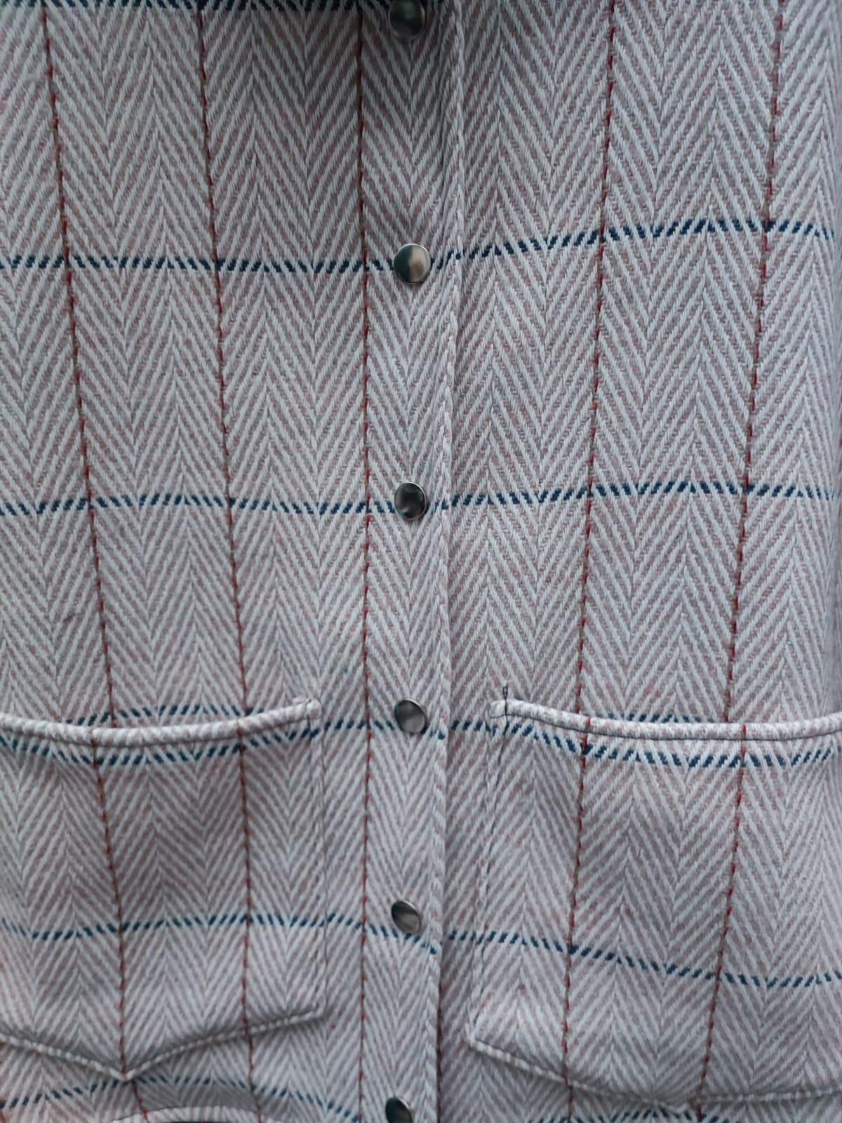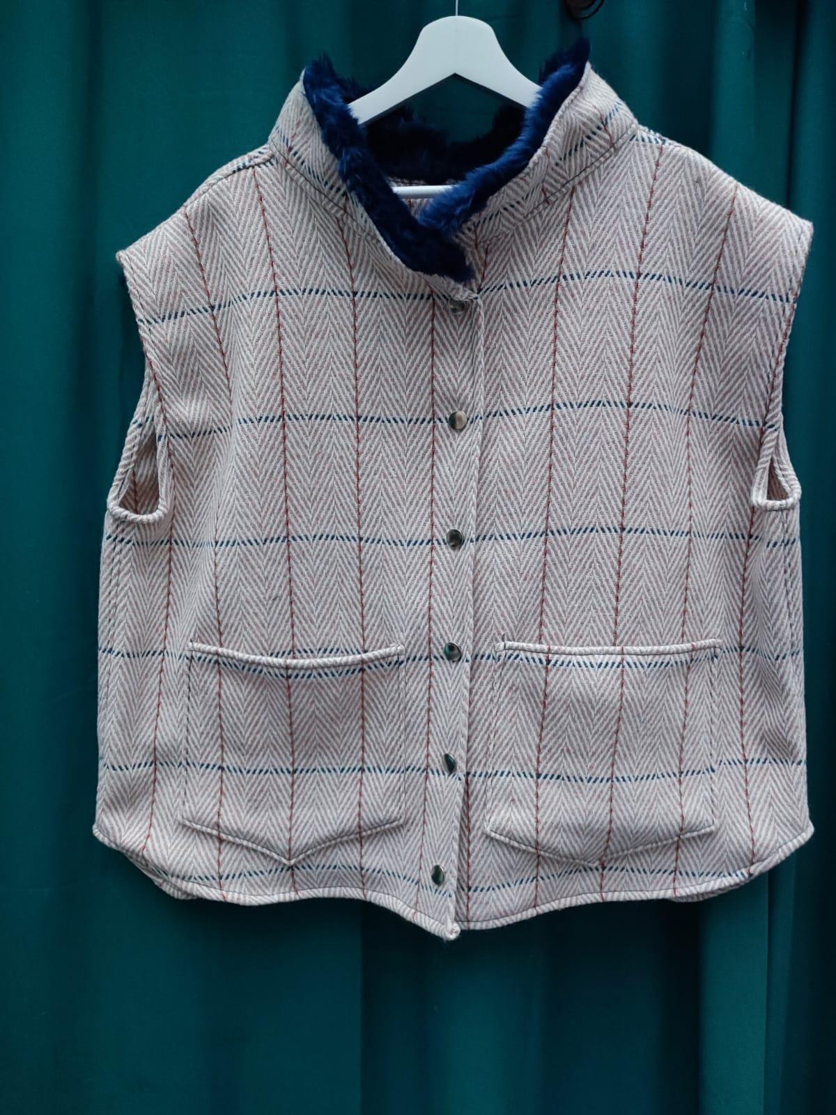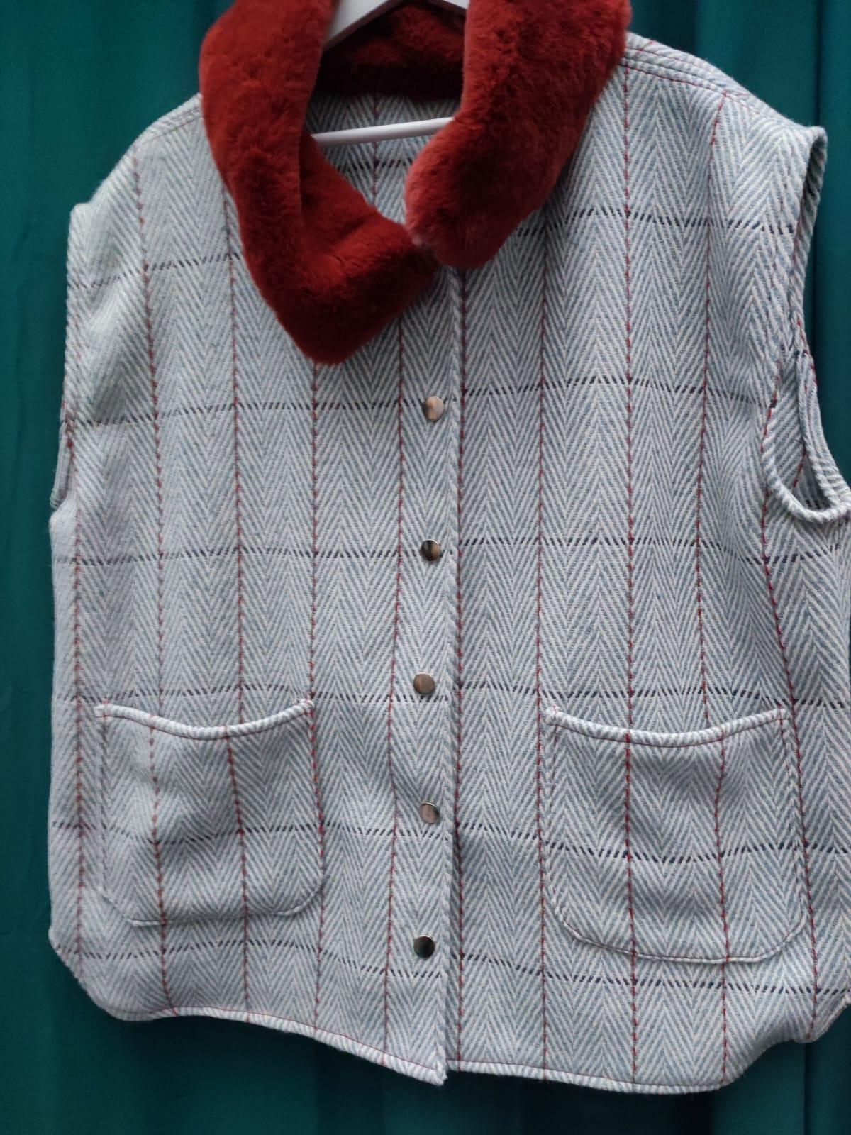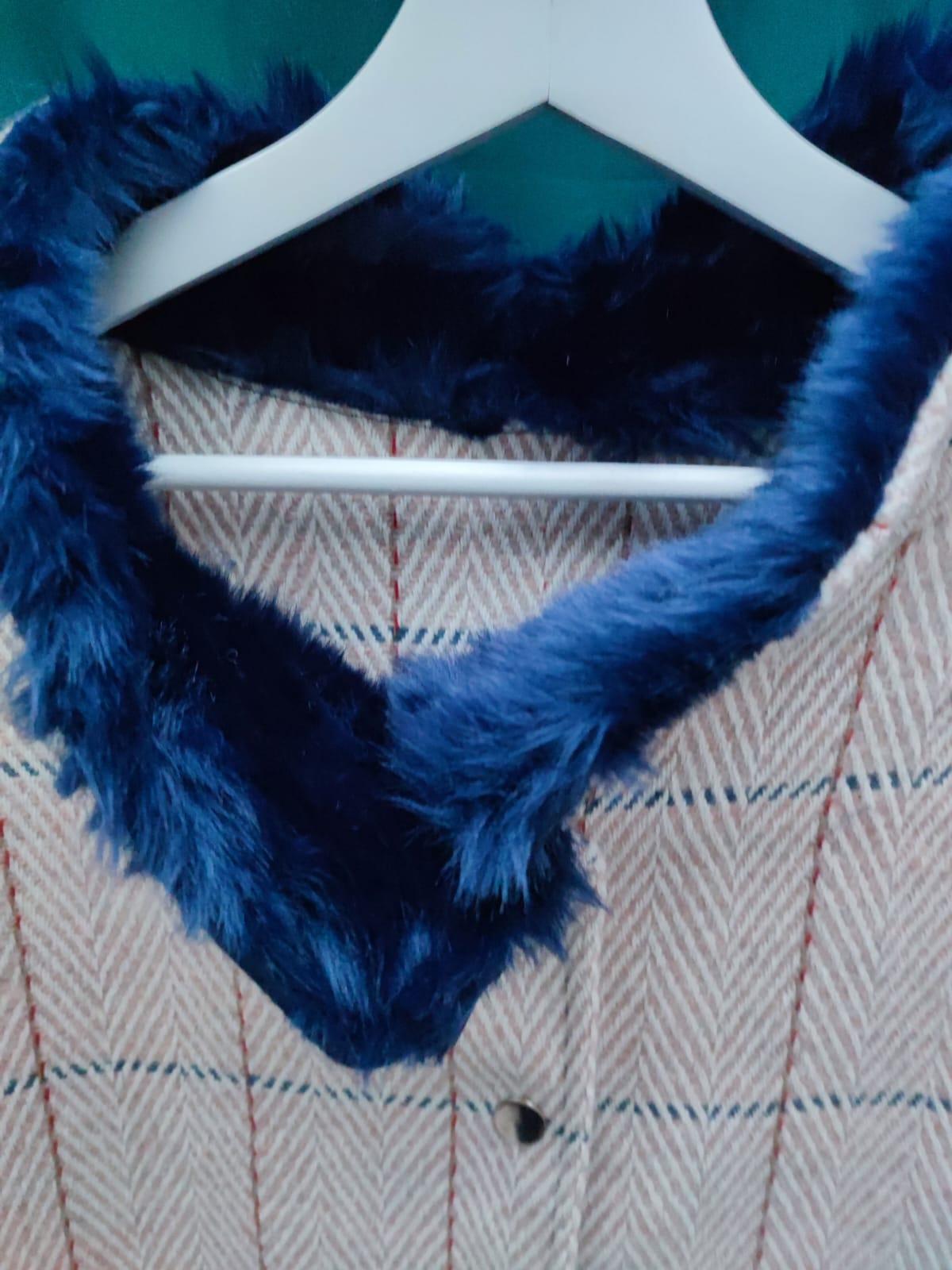Veste stylée en laine naturelle avec col en fourrure d'imitation et boutons pression, pour être bien tout en restant confortable: réalisé à la main dans notre atelier de Boulogne sur Mer, 100 % matières de qualité + beaucoup d'amour !