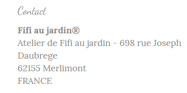 Ou rendez-vous à l'Atelier de Fifi au jardin pour rencontrer la créatrice et Fifi s'occupera de vous en un coup de baguette magique à l'aide de ses doigts de fée: +33 (0)6 61 20 38 16 creatrice@fifiaujardin.fr