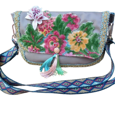 Cape asymétrique en laine brodée, transformable en étole, doublée et ornée...170,00€ TTC